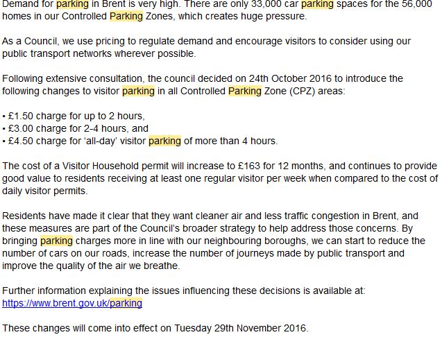 On Monday 24 October 2016, Cabinet agreed to increase visitor parking charges for stays of longer than two hours, in order order to regulate demand for parking spaces and encourage visitors to consider using our public transport networks wherever possible.