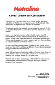 Other routes that were at risk are being kept. The 189 isn’t being rerouted to Camden, and nearby the 31 and 98 aren’t changing either. The 6 is changing to Willesden – Victoria via Hyde Park Corner.