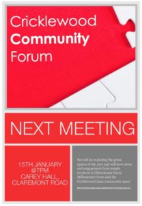 Cricklewood Community Forum is back! Next meeting on 15 January in the Carey Hall.