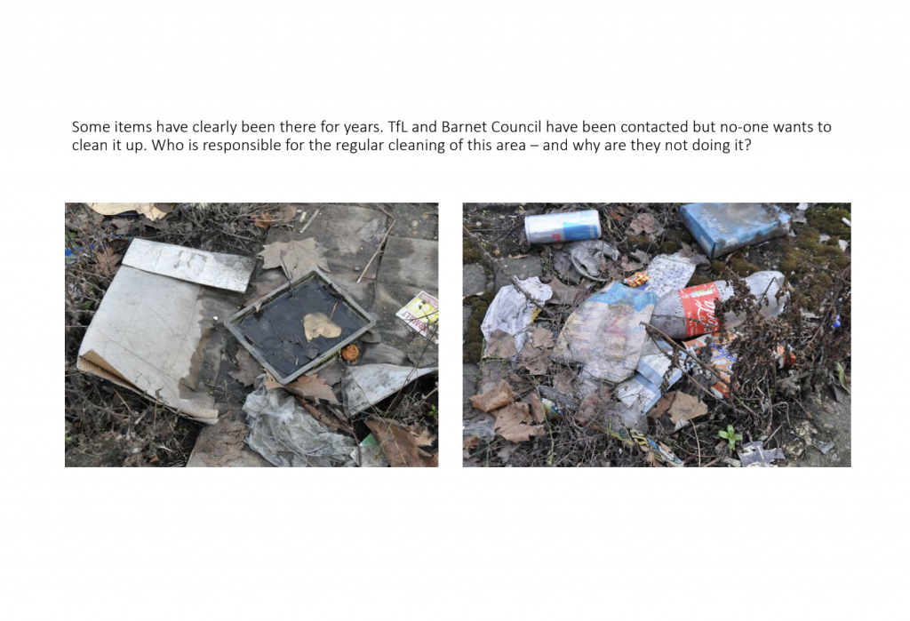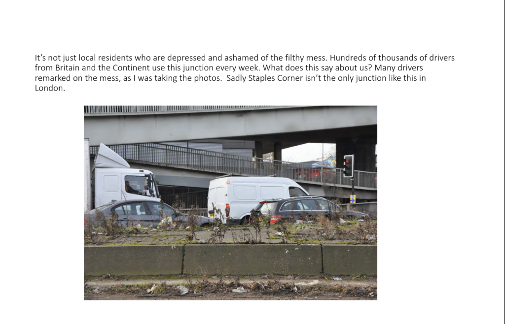 This is to put pressure on the Barnet Council and TFL to clean up years of neglect of Gateway to London Staples Corner and Flyover on the A5.
