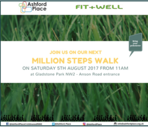 As part of the Ashford Place Fit + Well Programme, One Million Steps walking club aims to deliver improved mental health through exercise. We will be meeting for our monthly 5km walk in the park this Saturday, 5 August morning at 11.00.
