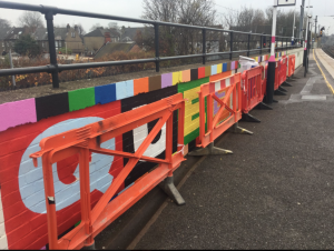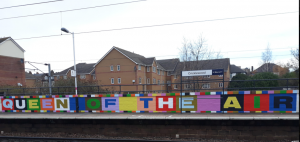 Cricklewood Town Team in Partnership with Govia Thameslink Railways are proud that Cricklewood Station platform hosts a legacy typographic mural by artist Lakwena in a tribute to pilot Amy Johnson, the first woman to fly solo from England to Australia in 1930.