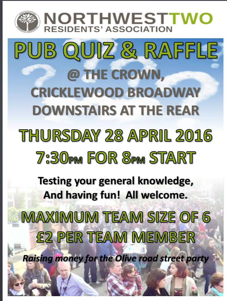 Bring a team or turn up and join a team on the night. Proceeds to the street party on Olive Road on June 5th.